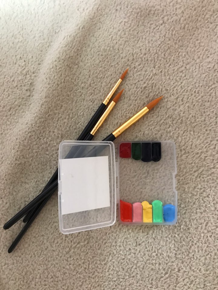 물감은 전문가용이라 색이 탁하지 않고 적은양이지만 오래쓸수있구, 붓 3개가 들어있어요